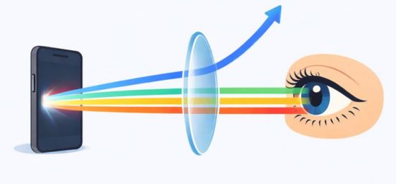Blue light filters work by selectively reflecting or absorbing HEV light. Because different wavelengths of light focus at slightly different points in the eye, reducing blue light can improve visual clarity and comfort. This helps reduce flicker sensitivity, improves contrast, and eases the strain caused by prolonged focusing on digital displays.